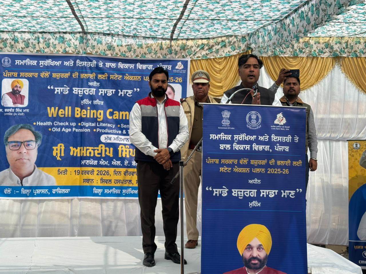 ਮੁੱਖ ਮੰਤਰੀ ਭਗਵੰਤ ਸਿੰਘ ਮਾਨ ਦੀ ਅਗਵਾਈ ਹੇਠ ਪੰਜਾਬ ਸਰਕਾਰ ਵੱਲੋਂ ਰਾਜ ਦੇ ਵਸਨੀਕਾਂ ਖਾਸਤੌਰ ਤੇ ਬਜੁਰਗਾਂ ਦੀ ਸਿਹਤ, ਸੁਰੱਖਿਆ ਅਤੇ ਮਾਣ-ਸਨਮਾਨ ਨੂੰ ਯਕੀਨੀ ਬਣਾਉਣ ਲਈ ਉਪਰਾਲੇ ਕੀਤੇ ਜਾ ਰਹੇ ਹਨ। ਸਮਾਜਿਕ ਸੁਰੱਖਿਆ, ਇਸਤਰੀ ਅਤੇ ਬਾਲ ਵਿਕਾਸ ਵਿਭਾਗ ਦੇ ਕੈਬਿਨੇਟ ਮੰਤਰੀ ਡਾ. ਬਲਜੀਤ ਕੌਰ ਦੀ ਪਹਿਲਕਦਮੀ ਸਦਕਾ ‘ਸਾਡੇ ਬਜ਼ੁਰਗ, ਸਾਡਾ ਮਾਣ’ ਮੁਹਿੰਮ ਸ਼ੁਰੂ ਕੀਤੀ ਗਈ ਜਿਸ ਤਹਿਤ ਬਲਾਕ ਪੱਧਰ ਤੇ ਲੜੀ ਵਾਰ ਕੈੰਪ ਲਗਾਏ ਜਾ ਰਹੇ ਹਨ। ਇਸ ਲੜੀ ਹੇਠ ਅੱਜ ਜ਼ਿਲ੍ਹਾ ਸਮਾਜਿਕ ਸੁਰੱਖਿਆ ਅਫਸਰ ਅਫਸਰ ਨਵੀਨ ਗਡਵਾਲ ਦੀ ਅਗਵਾਈ ਵਿੱਚ ਸੀਐਚਸੀ ਸੀਤੋ ਗੁੰਨੋ ਵਿਖੇ ਕੈੰਪ ਲਗਾਇਆ ਗਿਆ। ਇਸ ਦੌਰਾਨ ਵਿਧਾਇਕ ਬੱਲੂਆਣਾ ਸ਼੍ਰੀ ਅਮਨਦੀਪ ਸਿੰਘ ਗੋਲਡੀ ਮੁਸਾਫਰ ਨੇ ਮੁੱਖ ਮਹਿਮਾਨ ਵਜੋਂ ਸ਼ਿਰਕਤ ਕੀਤੀ। ਵਿਧਾਇਕ ਸ਼੍ਰੀ ਅਮਨਦੀਪ ਸਿੰਘ ਗੋਲਡੀ ਮੁਸਾਫਰ ਨੇ ਕਿਹਾ ਕਿ ਇਹ ਪਹਿਲਕਦਮੀ ਪੰਜਾਬ ਦੀ ਬਜ਼ੁਰਗ ਆਬਾਦੀ ਦਾ ਸਨਮਾਨ ਅਤੇ ਸਹਾਇਤਾ ਕਰਨ ਪ੍ਰਤੀ ਸੂਬਾ ਸਰਕਾਰ ਦੀ ਲੋਕ-ਪੱਖੀ ਪਹੁੰਚ ਨੂੰ ਦਰਸਾਉਂਦੀ ਹੈ। ਉਨ੍ਹਾਂ ਕਿਹਾ ਕਿ “ਸਾਡੇ ਬਜ਼ੁਰਗ ਸਾਡਾ ਮਾਣ” ਮੁਹਿੰਮ ਤਹਿਤ ਬਜੁਰਗ ਨਾਗਰਿਕਾਂ ਦੀ ਭਲਾਈ ਲਈ ਮੈਡੀਕਲ ਚੈੱਕਅਪ ਦੇ ਤਹਿਤ ਜਨਰਲ ਮੈਡੀਕਲ, ਆਰਥੋ, ਕੰਨਾਂ, ਗਲਾ ਤੇ ਨੱਕ, ਅੱਖਾਂ ਦਾ ਚੈੱਕਅਪ, ਹੋਮਿਓਪੈਥੀ, ਆਯੁਰਵੈਦਿਕ ਚੈੱਕਅਪ, ਐਲਿਮਕੋ ਅਤੇ ਜ਼ਿਲ੍ਹਾ ਕਾਨੂੰਨੀ ਸੇਵਾਵਾਂ ਅਥਾਰਟੀ ਅਤੇ ਬੁਢਾਪਾ ਪੈਨਸ਼ਨ ਸੇਵਾਵਾਂ ਦਿੱਤੀਆਂ ਗਈਆਂ। ਉਹਨਾਂ ਕਿਹਾ ਕਿ ਇਹ ਸਾਡੀ ਸਰਕਾਰ ਦੀ ਜਿੰਮੇਵਾਰੀ ਬਣਦੀ ਹੈ ਕਿ ਬਜੁਰਗਾਂ ਨੂੰ ਉਚਿਤ ਮਾਨ ਸਨਮਾਨ ਦੇ ਨਾਲ-ਨਾਲ, ਮੈਡੀਕਲ ਅਤੇ ਹੋਰ ਸਮਾਜਿਕ ਸੁਰੱਖਿਆ ਸੇਵਾਵਾਂ ਪਹਿਲ ਦੇ ਆਧਾਰ ਤੇ ਉਪਲਬਧ ਕਰਵਾਈਆਂ ਜਾਣ। ਉਨ੍ਹਾਂ ਮੁੱਖ ਮੰਤਰੀ ਸਿਹਤ ਯੋਜਨਾ ਬਾਰੇ ਜਾਣਕਾਰੀ ਸਾਂਝੀ ਕਰਦਿਆਂ ਕਿਹਾ ਕਿ ਇਸ ਯੋਜਨਾ ਤਹਿਤ ਹਰੇਕ ਪਰਿਵਾਰ ਦਾ 10 ਲੱਖ ਦਾ ਸਿਹਤ ਬੀਮਾ ਕਾਰਡ ਬਣੇਗਾ ਤੇ ਲੋਕ ਆਪਣਾ 10 ਲੱਖ ਤੱਕ ਦਾ ਸਾਲਾਨਾ ਇਲਾਜ ਸਰਕਾਰੀ ਤੇ ਮਨਜ਼ੂਰਸ਼ੁਦਾ ਪ੍ਰਾਈਵੇਟ ਹਸਪਤਾਲਾਂ ਵਿੱਚ ਕਰਵਾ ਸਕਣਗੇ ਤੇ ਇਹ ਇਲਾਜ ਹਸਪਤਾਲਾਂ ਵਿੱਚ ਬਿਲਕੁਲ ਮੁਫ਼ਤ ਹੋਵੇਗਾ। ਉਨ੍ਹਾਂ ਕਿਹਾ ਕਿ ਵਸਨੀਕ ਆਪਣਾ ਆਧਾਰ ਕਾਰਡ ਤੇ ਵੋਟ ਕਾਰਡ ਨਾਲ ਲੈ ਕੇ ਆਪਣਾ ਮੁੱਖ ਮੰਤਰੀ ਸਿਹਤ ਯੋਜਨਾ ਦਾ ਕਾਰਡ ਬਣਵਾ ਲੈਣ, ਇਹ ਕਾਰਡ ਪਿੰਡ ਪਿੰਡ ਜਾ ਕੇ ਵੀ ਬਣਾਏ ਜਾ ਰਹੇ ਹਨ। ਉਨ੍ਹਾਂ ਕਿਹਾ ਕਿ ਇਸ ਕਾਰਡ ਦੀ ਮਦਦ ਨਾਲ ਬਜ਼ੁਰਗਾਂ ਅਤੇ ਉਹਨਾਂ ਦੇ ਪਰਿਵਾਰਿਕ ਮੈਂਬਰਾਂ ਨੂੰ ਰਾਹਤ ਮਿਲੇਗੀ। ਇਸ ਮੌਕੇ ਸੀਐਚਸੀ ਸੀਤੋ ਗੁੰਨੋ ਦੇ ਮੈਡੀਕਲ ਅਫਸਰ ਡਾ ਨਵੀਨ ਮਿੱਤਲ, ਸੀ ਡੀ ਪੀ ਓ ਨਵਦੀਪ ਕੋਰ, ਡਾ ਰਵੀ ਬਾਂਸਲ, ਡਾ ਮਹੇਸ਼ ਕੁਮਾਰ, ਡਾ ਸਨਮਾਨ ਮਿੱਡਾ, ਡਾ ਸੁਬੀਨ ਇੰਦਰ ਕੌਰ, ਡਾ ਲਵਲੀ ਕਾਂਸਲ, ਡਾ ਆਸ਼ੀਮਾ ਸੇਠੀ, ਡਾ. ਮੁਕੇਸ਼, ਡਿਪਟੀ ਮਾਸ ਮੀਡੀਆ ਅਫਸਰ ਮਨਬੀਰ ਸਿੰਘ, ਬੀ.ਈ.ਈ ਸੁਨੀਲ ਟੰਡਨ, ਸੀਡੀਪੀਓ ਜਯੋਤੀ ਕਾਲੜਾ, ਸੁਨੀਲ ਸੇਠੀ, ਨੇਹਾ, ਨਵਨੀਤ ਕੌਰ, ਵੱਖ-ਵੱਖ ਪਿੰਡਾਂ ਦੇ ਸਰਪੰਚ ਅਤੇ ਪੰਚਾਇਤ ਮੈਂਬਰ ਅਤੇ ਵੱਖ-ਵੱਖ ਵਿਭਾਗਾਂ ਦੇ ਅਧਿਕਾਰੀ, ਸਟਾਫ ਅਤੇ ਹੋਰ ਪਤਵੰਤੇ ਸੱਜਣ ਮੌਜੂਦ ਸਨ।
