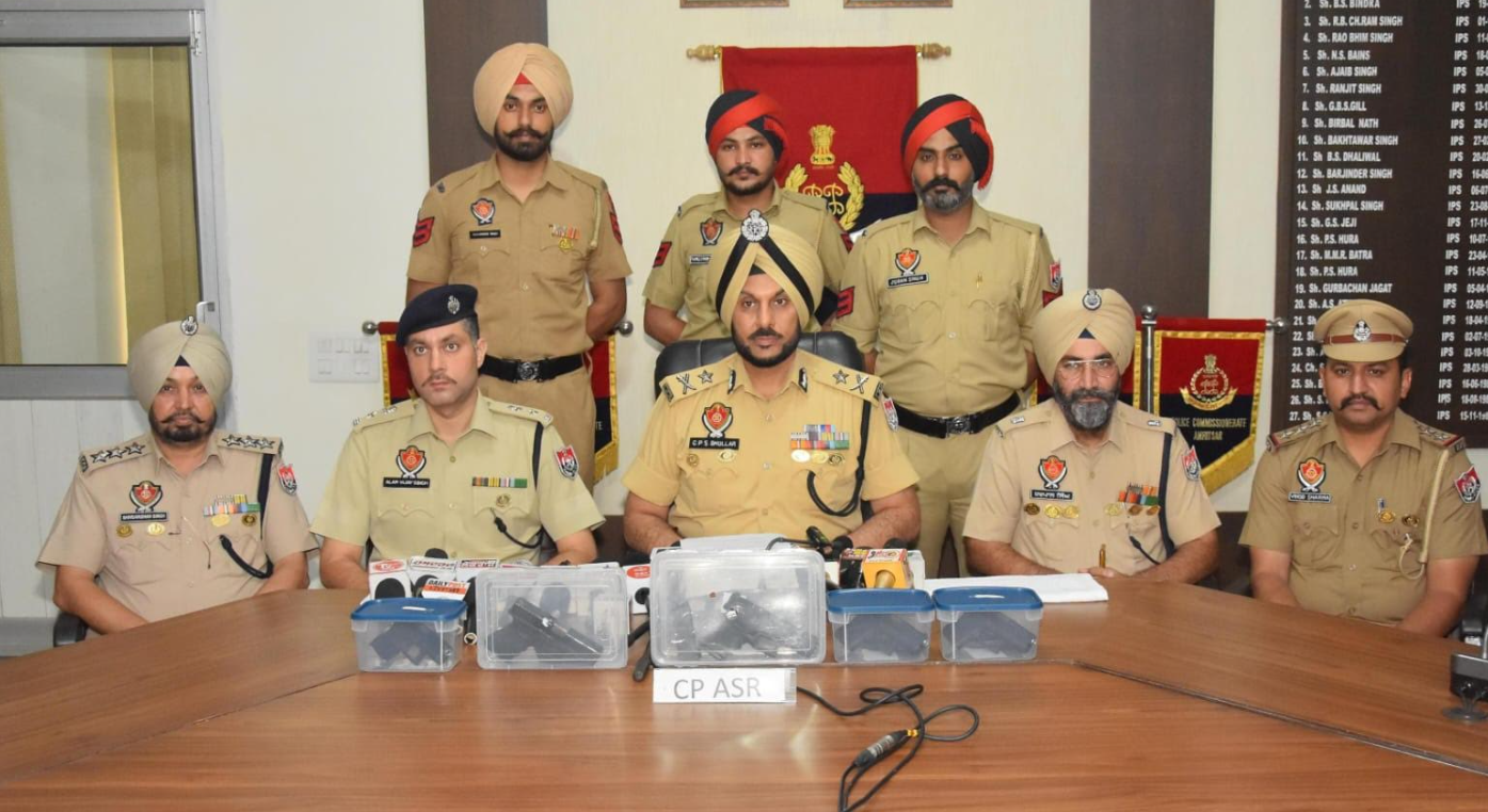 ਮੁੱਖ ਮੰਤਰੀ ਭਗਵੰਤ ਸਿੰਘ ਮਾਨ ਦੇ ਨਿਰਦੇਸ਼ਾਂ ਅਨੁਸਾਰ ਪੰਜਾਬ ਨੂੰ ਸੁਰੱਖਿਅਤ ਸੂਬਾ ਬਣਾਉਣ ਲਈ ਜਾਰੀ ਮੁਹਿੰਮ ਦੌਰਾਨ ਅੰਮ੍ਰਿਤਸਰ ਕਮਿਸ਼ਨਰੇਟ ਪੁਲਿਸ ਨੇ ਇੱਕ ਮੁਲਜ਼ਮ ਨੂੰ ਪੰਜ ਅਤਿ-ਆਧੁਨਿਕ 9 ਐਮਐਮ ਗਲੌਕ ਪਿਸਤੌਲਾਂ ਅਤੇ ਚਾਰ ਮੈਗਜ਼ੀਨਾਂ ਸਮੇਤ ਗ੍ਰਿਫ਼ਤਾਰ ਕਰਕੇ ਸਰਹੱਦ ਪਾਰੋਂ ਹਥਿਆਰਾਂ ਦੀ ਤਸਕਰੀ ਦੇ ਰੈਕੇਟ ਦਾ ਪਰਦਾਫਾਸ਼ ਕੀਤਾ ਹੈ। ਇਹ ਜਾਣਕਾਰੀ ਅੱਜ ਇਥੇ ਡਾਇਰੈਕਟਰ ਜਨਰਲ ਆਫ਼ ਪੁਲਿਸ (ਡੀਜੀਪੀ), ਪੰਜਾਬ ਗੌਰਵ ਯਾਦਵ ਨੇ ਦਿੱਤੀ।