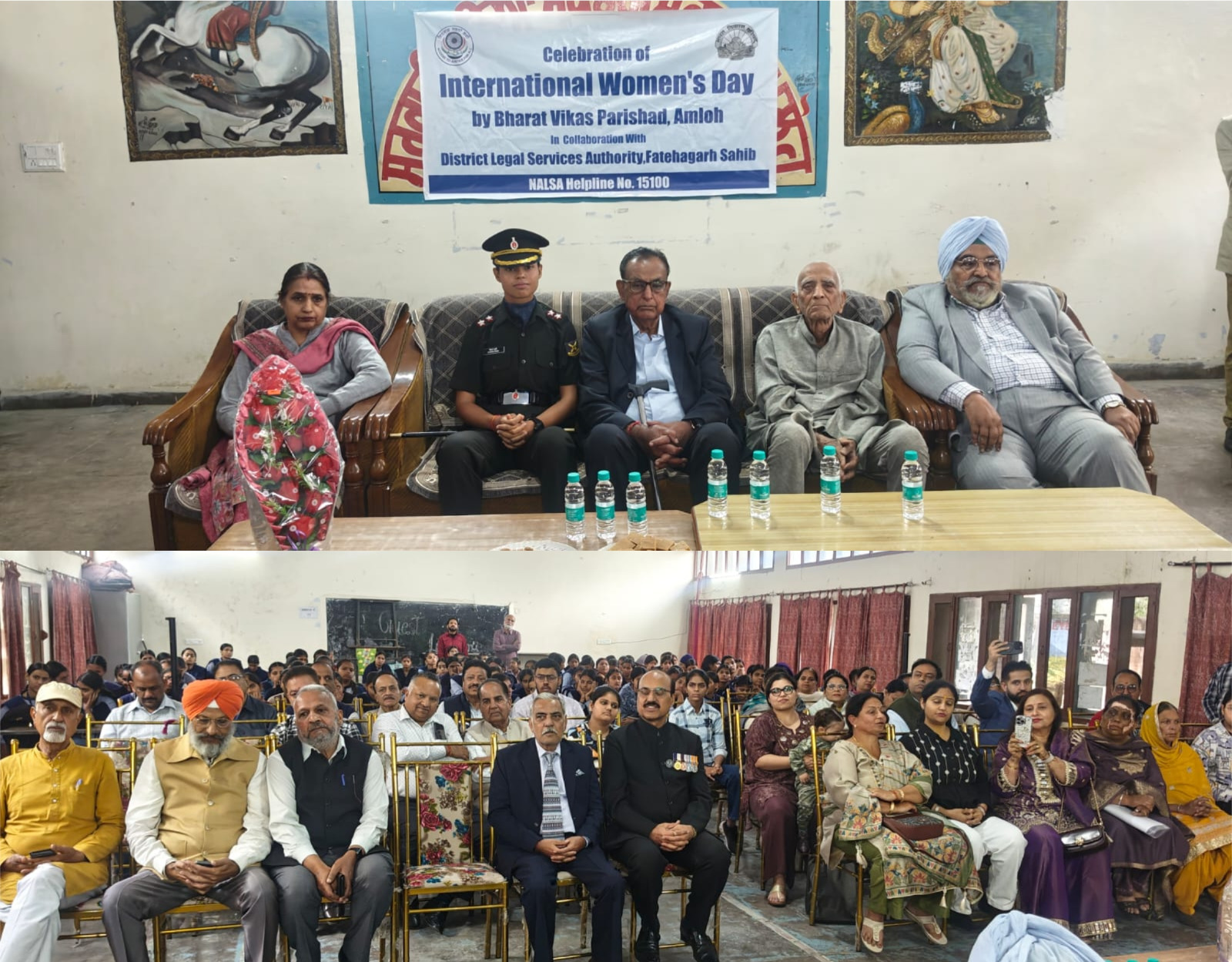 ਭਾਰਤ ਵਿਕਾਸ ਪਰਿਸ਼ਦ ਬਰਾਂਚ ਅਮਲੋਹ ਵੱਲੋਂ ਡਿਸਟਰਿਕਟ ਲੀਗਲ ਸਰਵਿਸ ਅਥੋਰਟੀ ਫਤਿਹਗੜ੍ਹ ਸਾਹਿਬ ਦੇ ਸਹਿਯੋਗ ਨਾਲ ਅੰਤਰਰਾਸ਼ਟਰੀ ਮਹਿਲਾ ਦਿਵਸ ਨੂੰ ਸਮਰਪਿਤ ਇੱਕ ਸਮਾਗਮ ਦਾ ਆਯੋਜਨ ਸਰਕਾਰੀ ਸੀਨੀਅਰ ਸੈਕੰਡਰੀ ਸਕੂਲ ਲੜਕੀਆਂ ਦੇ ਸਕੂਲ ਵਿਖੇ ਕੀਤਾ ਗਿਆ। ਇਸ ਸਮਾਗਮ ਵਿੱਚ ਦੀਕਸ਼ਾ ਪੁਰੀ ਬਤੌਰ ਲੈਫਟੀਡੈਂਟ ਜੱਜ ਐਡਵੋਕੇਟ ਇੰਡੀਅਨ ਆਰਮੀ ਵਿਸ਼ੇਸ਼ ਤੌਰ ਤੇ ਪਹੁੰਚੇ ਪਰਿਸ਼ਦ ਵੱਲੋਂ ਉਹਨਾਂ ਦਾ ਸਨਮਾਨ ਕੀਤਾ ਗਿਆ।