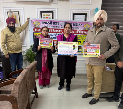 31 ਜਨਵਰੀ 2026 ਤੱਕ ਮਨਾਏ ਜਾ ਰਹੇ ਰਾਸ਼ਟਰੀ ਸੜਕ ਸੁਰੱਖਿਆ ਮਹੀਨਾ ਮੁਹਿੰਮ ਤਹਿਤ ਡਿਪਟੀ ਕਮਿਸ਼ਨਰ ਅਮਰਪ੍ਰੀਤ ਕੌਰ ਸੰਧੂ ਨੇ ਸੜਕੀ ਨਿਯਮਾ ਦੀ ਪਾਲਣਾ ਨੁੰ ਦਰਸ਼ਾਉਂਦਾ ਜਾਗਰੂਕਤਾ ਪੋਸਟਰ ਰਿਲੀਜ ਕੀਤਾ। ਉਨ੍ਹਾਂ ਕਿਹਾ ਕਿ ਸੜਕ *ਤੇ ਚੱਲਦੇ ਸਮੇਂ ਨਿਯਮਾਂ ਦੀ ਪਾਲਣਾ ਕਰਕੇ ਨਾਗਰਿਕ ਖੁਦ ਦੇ ਨਾਲ-ਨਾਲ ਹੋਰਨਾ ਲੋਕਾਂ ਦੀ ਵੀ ਜਾਨ ਬਚਾ ਸਕਦੇ ਹਨ। ਉਨ੍ਹਾਂ ਕਿਹਾ ਕਿ ਲੋਕਾਂ ਨੂੰ ਸੜਕ ਸੁਰੱਖਿਆ ਨਿਯਮਾਂ ਬਾਰੇ ਜਾਗਰੂਕ ਕਰਨ ਲਈ ਵੱਖ-ਵੱਖ ਵਿਭਾਗਾਂ ਦੇ ਮਾਰਫਤ 31 ਜਨਵਰੀ ਤੱਕ ਗਤੀਵਿਧੀਆਂ ਕਰਵਾਈਆਂ ਜਾਣਗੀਆਂ ਤਾਂ ਜ਼ੋ ਸੜਕੀ ਹਾਦਸਿਆਂ ਨੂੰ ਪੂਰੀ ਤਰ੍ਹਾਂ ਠਲ ਪਾਈ ਜਾ ਸਕੇ।