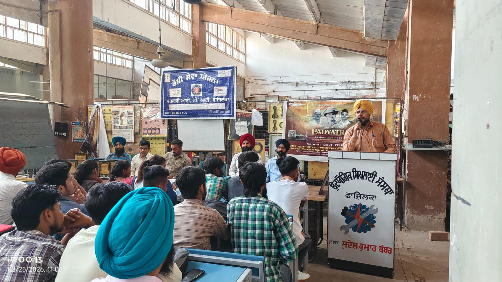 ਸਰਕਾਰੀ ਆਈ.ਟੀ.ਆਈ. ਫਾਜ਼ਿਲਕਾ ਵਿਖੇ ਖੇਡ ਮੰਤਰਾਲਾ ਭਾਰਤ ਸਰਕਾਰ ਅਤੇ ਮੇਰਾ ਯੁਵਾ ਭਾਰਤ (ਫਾਜ਼ਿਲਕਾ/ਫਿਰੋਜ਼ਪੁਰ) ਦੇ ਦਿਸ਼ਾ-ਨਿਰਦੇਸ਼ਾਂ ਹੇਠ ਜ਼ਿਲ੍ਹਾ ਪੱਧਰੀ ਪੈਦਲ ਯਾਤਰਾ ਦਾ ਆਯੋਜਨ ਕੀਤਾ ਗਿਆ।ਇਸ ਸਮਾਗਮ ਦਾ ਆਯੋਜਨ ਜ਼ਿਲ੍ਹਾ ਯੂਥ ਅਫ਼ਸਰ ਮੋਹਿਤ ਕੁਮਾਰ ਸੈਣੀ, ਸੀਨੀਅਰ ਲੇਖਾ ਅਤੇ ਪ੍ਰੋਗਰਾਮ ਸੁਪਰਵਾਈਜ਼ਰ ਮਨਜੀਤ ਸਿੰਘ ਭੁੱਲਰ ਅਤੇ ਪ੍ਰਿੰਸੀਪਲ ਰਾਜਿੰਦਰ ਸਿੰਘ ਜੋਸਨ ਦੀ ਦੇਖ-ਰੇਖ ਹੇਠ ਕੀਤਾ ਗਿਆ। ਵਾਈਸ ਪ੍ਰਿੰਸੀਪਲ ਵੱਲੋਂ ਹਰੀ ਝੰਡੀ ਦੇ ਕੇ ਪੈਦਲ ਯਾਤਰਾ ਦੀ ਸ਼ੁਰੂਆਤ ਕਰਵਾਈ ਗਈ।