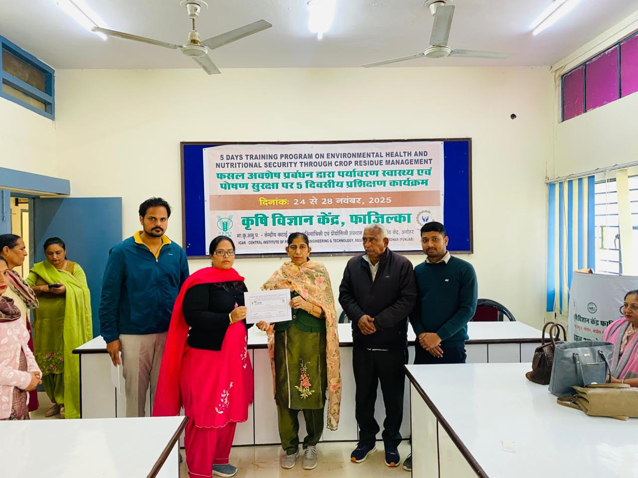 ਫਸਲਾਂ ਦੀ ਰਹਿੰਦ-ਖੂੰਹਦ ਪ੍ਰਬੰਧਨ ਰਾਹੀਂ ਵਾਤਾਵਰਣ, ਸਿਹਤ ਅਤੇ ਪੋਸ਼ਣ ਸੁਰੱਖਿਆ ਬਾਰੇ ਪੰਜ ਦਿਨਾਂ ਸਿਖਲਾਈ ਸਫਲਤਾਪੂਰਵਕ ਸਮਾਪਤ ਹੋਈ