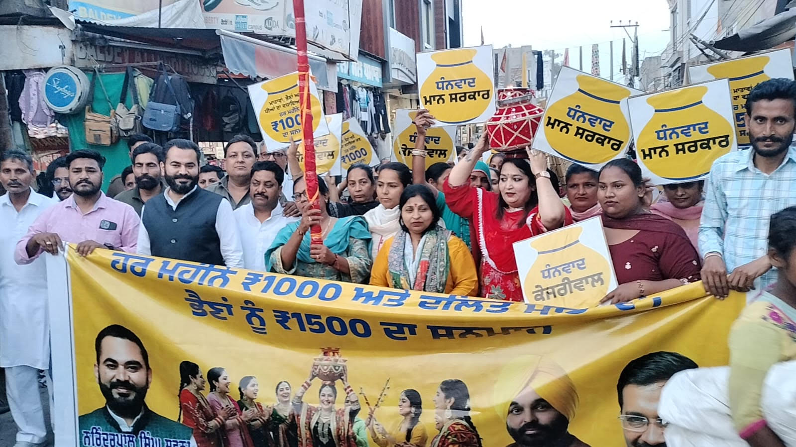 ਜ਼ਿਲ੍ਹਾ ਪ੍ਰਧਾਨ ਅਲਕਾ ਜੁਨੇਜਾ ਨੇ ਦਸਿਆ ਕਿ ਸੂਬੇ ਭਰ ਦੀਆ ਅਨੁਸੂਚਿਤ ਜਾਤੀ ਨਾਲ ਸਬੰਧਤ ਔਰਤਾਂ ਨੂੰ 1500 ਅਤੇ ਜਰਨਲ ਵਰਗ ਨੂੰ 1000 ਪ੍ਰਤੀ ਮਹੀਨਾ ਦੇਣ ਐਲਾਨ ਤੋਂ ਬਾਅਦ ਔਰਤਾਂ ਵਿੱਚ ਖੁਸ਼ੀ ਪਾਈ ਜਾ ਰਹੀ ਹੈ। ਇਸ ਦੇ ਚਲਦੇ ਔਰਤਾਂ ਵਲੋਂ ਖੁਸ਼ੀ ਪ੍ਰਗਟ ਕਰਦੇ ਇਕ ਵਿਸੇਸ਼ ਜਾਗੋਂ ਕੱਢੀ ਗਈ ਅਤੇ ਢੋਲ ਢਮਕੇ ਨਾਲ ਖੁਸ਼ੀ ਪ੍ਰਗਟ ਕਰਦੇ ਹੋਏ ਪੰਜਾਬ ਸਰਕਾਰ ਮੁੱਖ ਮੰਤਰੀ ਭਗਵੰਤ ਸਿੰਘ ਮਾਨ ਤੇ ਪਾਰਟੀ ਸੁਪਰੀਮੋ ਅਰਵਿੰਦ ਕੇਜਰੀਵਾਲ ਦਾ ਧੰਨਵਾਦ ਕੀਤਾ ਜਿਨ੍ਹਾਂ ਖੁਸ਼ੀ ਜ਼ਾਹਿਰ ਕਰਦੇ ਕਿਹਾ ਕੇ ਪੰਜਾਬ ਦਾ ਪਹਿਲਾਂ ਸੂਬਾ ਹੈ ਜਿੱਥੇ ਔਰਤਾਂ ਨੂੰ ਇਕ ਵੱਡਾ ਮਾਨ ਸਨਮਾਨ ਦਿੱਤਾ ਗਿਆ ਹੈ।
